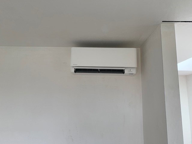 - de VRV lucht-lucht warmtepomp bedient de binnentoestellen in de zomer van koele lucht en in de winter van warme lucht. Onze klant koos voor stylish wandmodellen en een vloermodel.